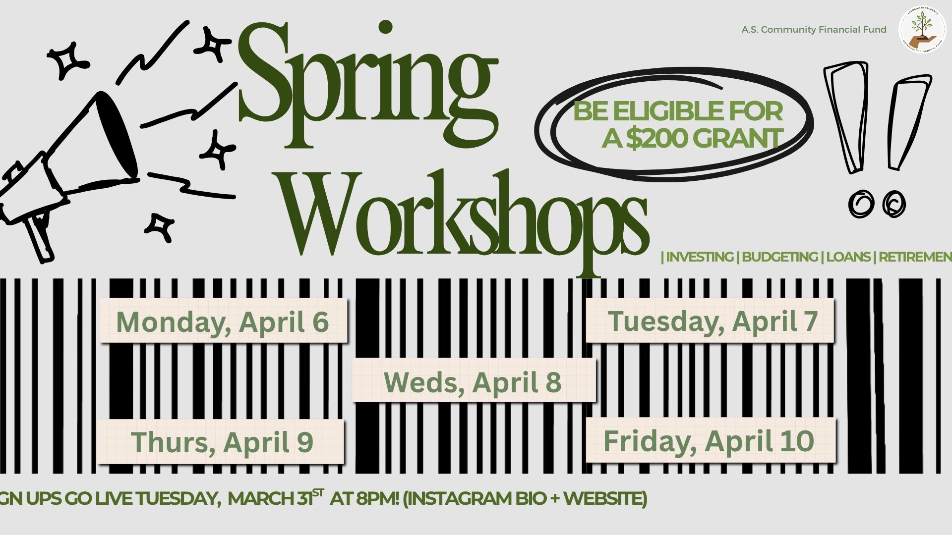 The Community Financial Fund offers Financial Literacy Grant Workshops to UC Santa Barbara undergraduates during the Fall, Winter, and Spring Quarters. Undergraduates can apply for the grant once per academic year.